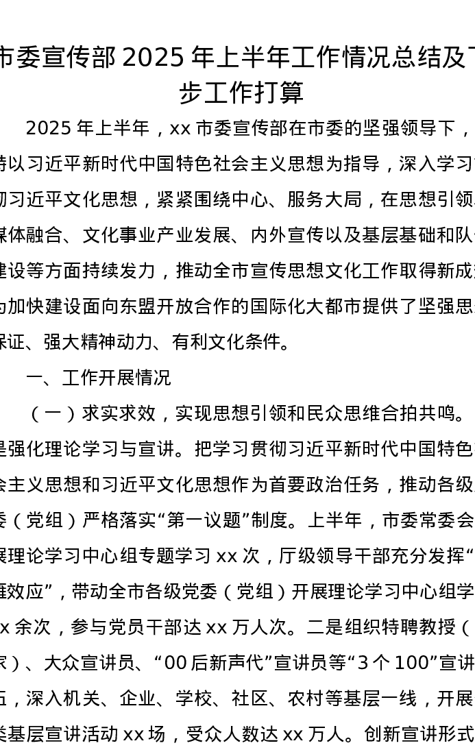 市委宣传部2025年上半年工作情况总结及下步工作打算