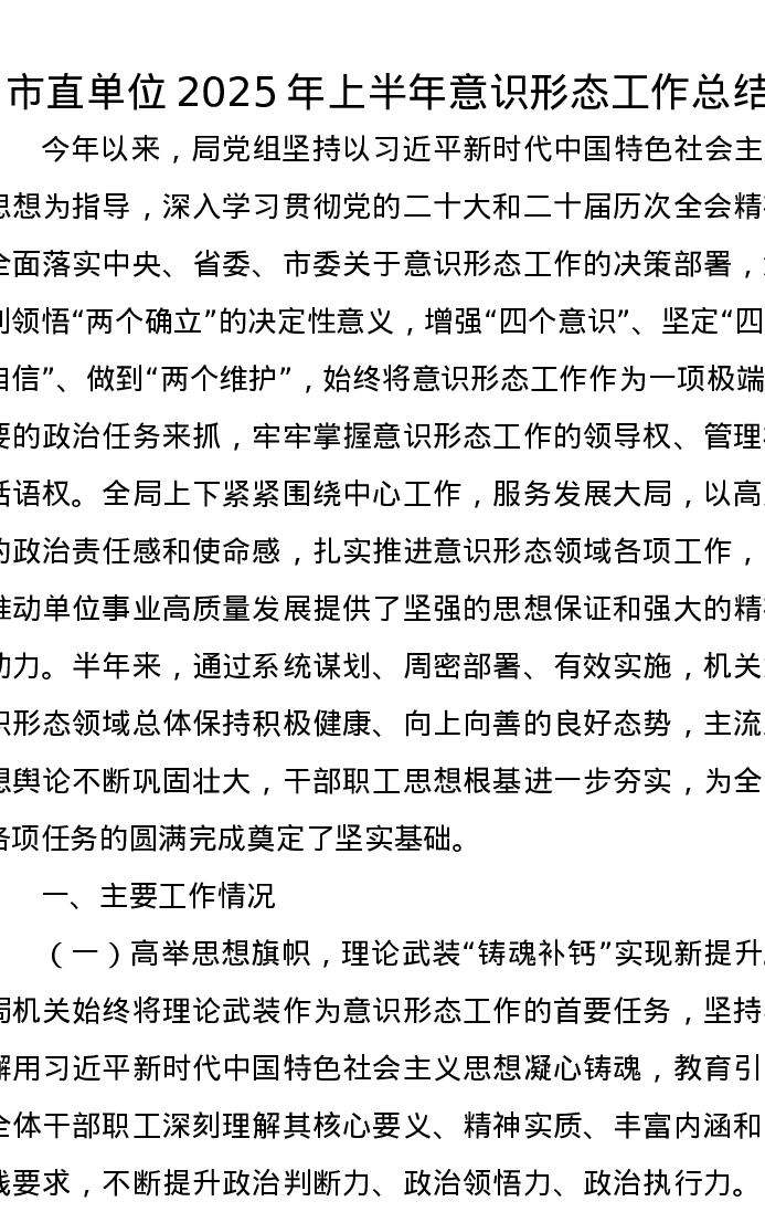 市直单位2025年上半年意识形态工作总结