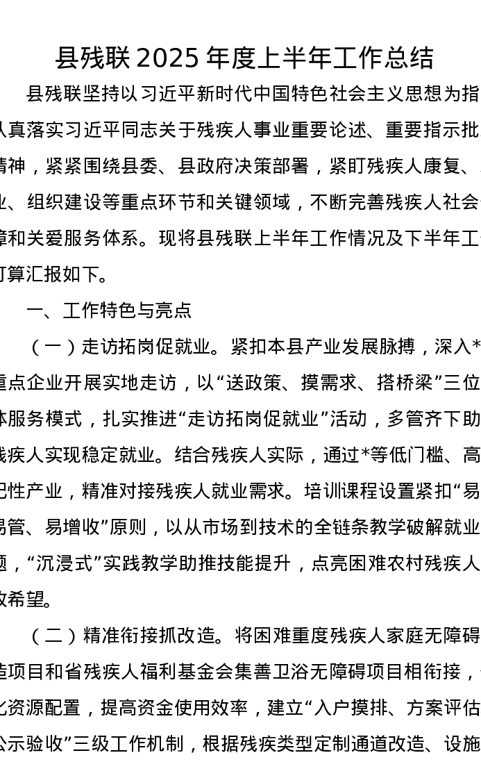 县残联2025年度上半年工作总结