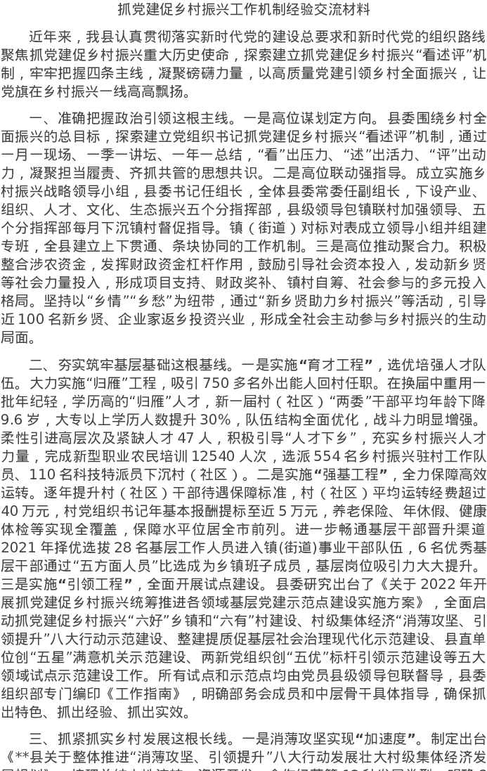 20220614抓党建促乡村振兴工作机制经验交流材料