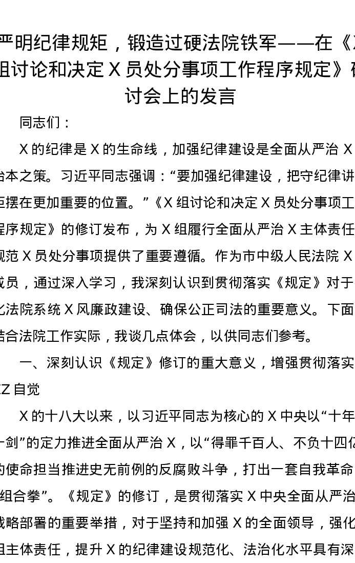严明纪律规矩,锻造过硬法院铁军——在《党组讨论和决定党员处分事项工作程序规定》研讨会上的发言