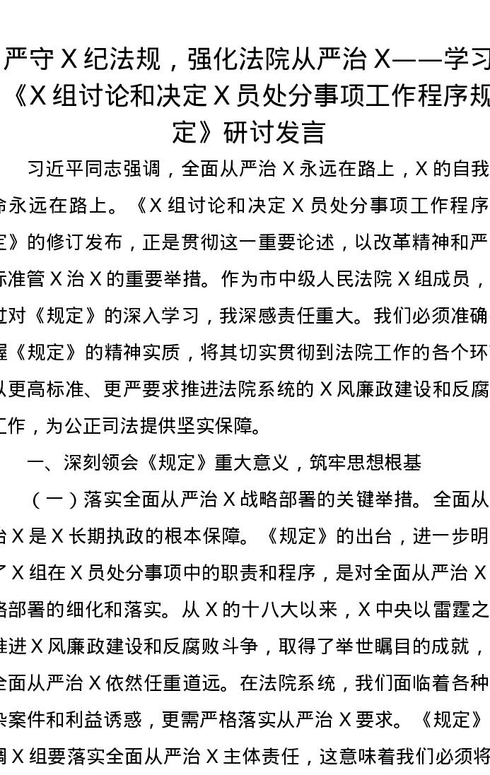 严守党纪法规,强化法院从严治党——学习《党组讨论和决定党员处分事项工作程序规定》研讨发言 (2)