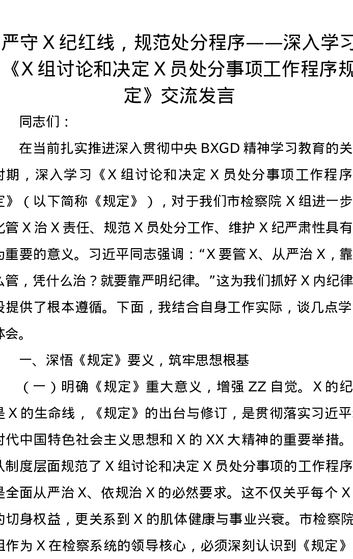 严守党纪红线,规范处分程序——深入学习《党组讨论和决定党员处分事项工作程序规定》交流发言