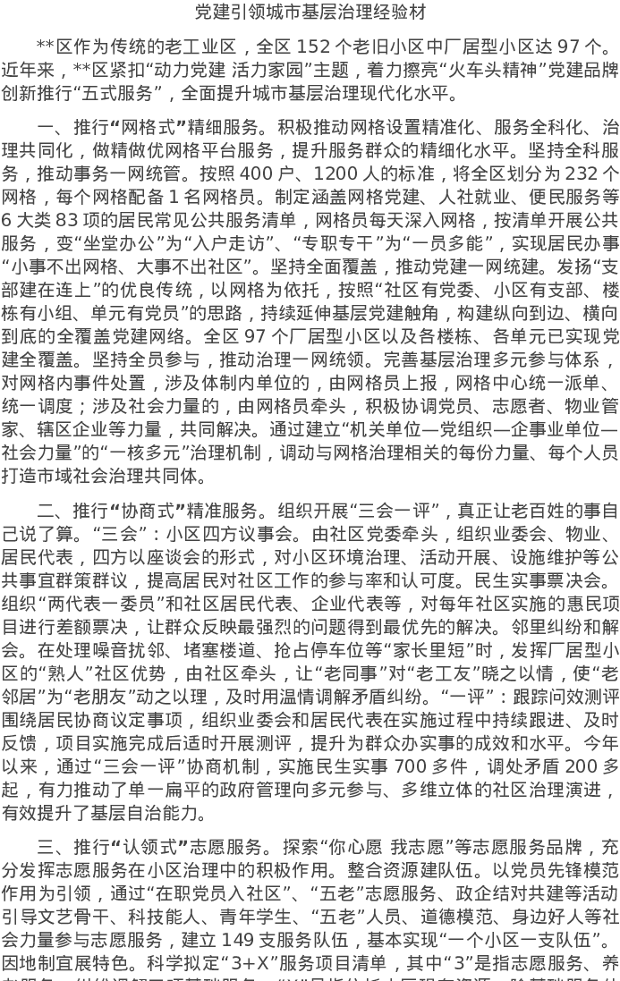 20220624党建引领城市基层治理经验材