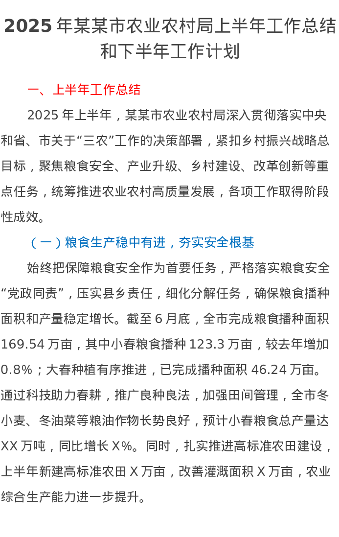 2025年某某市农业农村局上半年工作总结和下半年工作计划