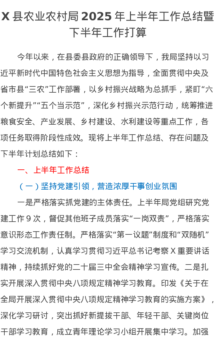 X县农业农村局2025年上半年工作总结暨下半年工作打算