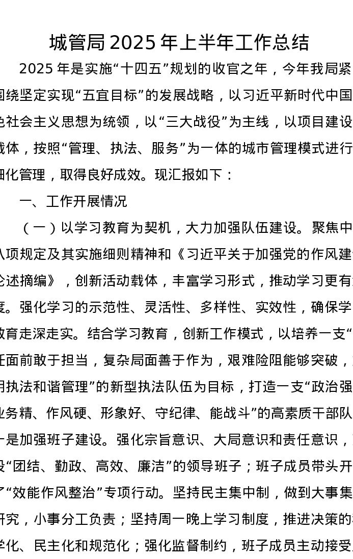 城管局2025年上半年工作总结