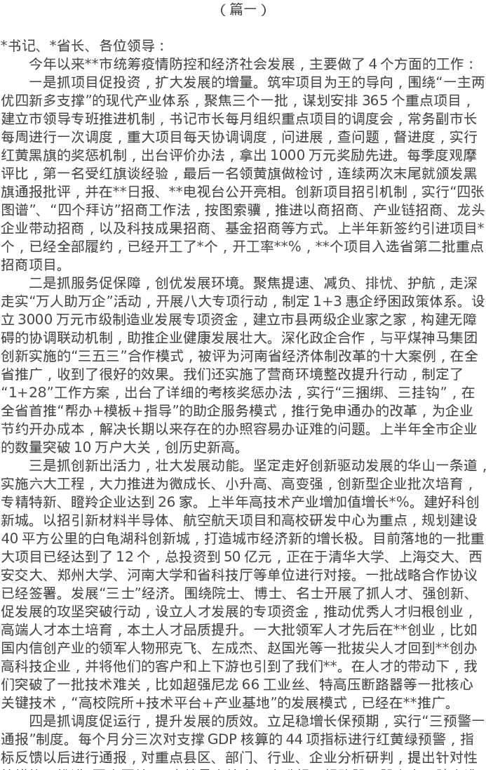 20220711市委书记在全省经济形势分析会上的经验交流材料3篇
