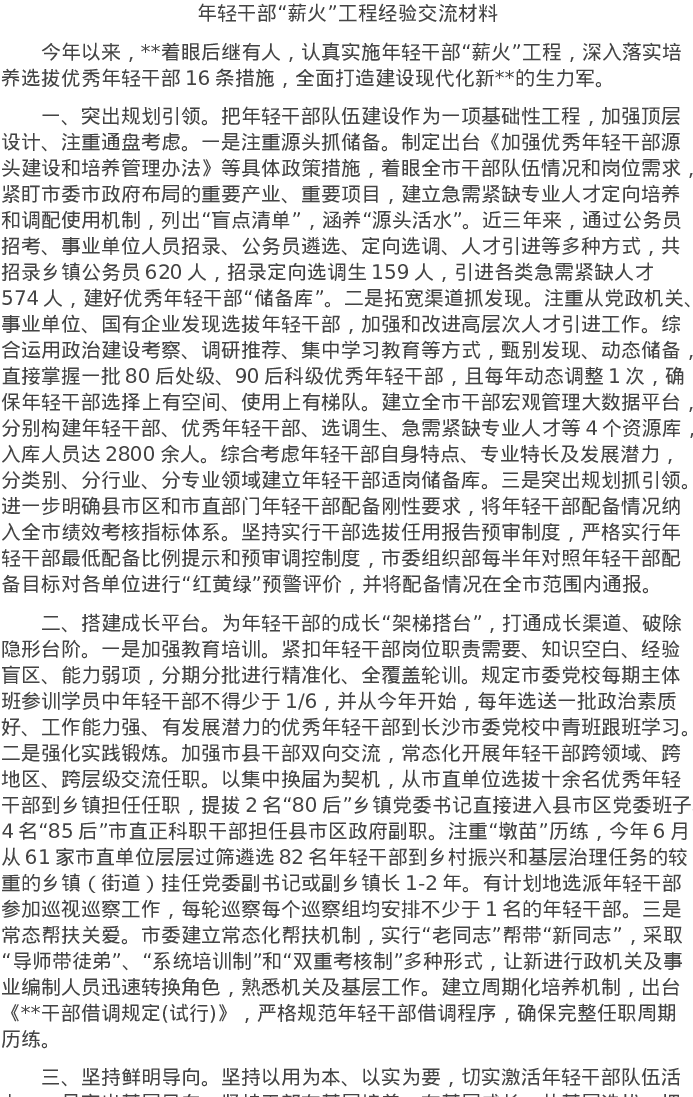 20220715年轻干部“薪火”工程经验交流材料