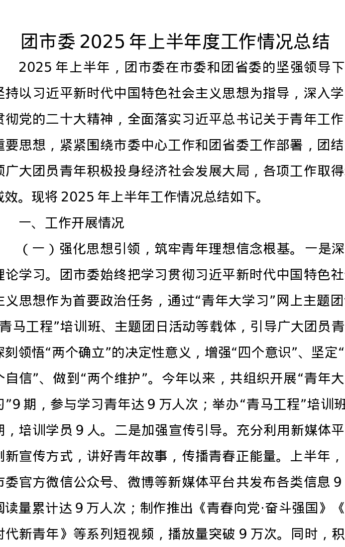 团市委2025年上半年度工作情况总结