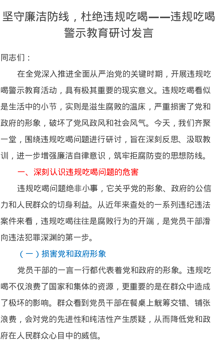 坚守廉洁防线,杜绝违规吃喝——违规吃喝警示教育研讨发言