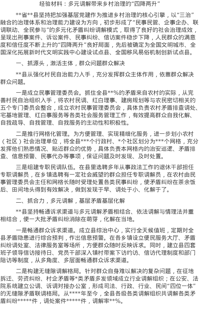 20220719经验材料:多元调解带来乡村治理的“四降两升”
