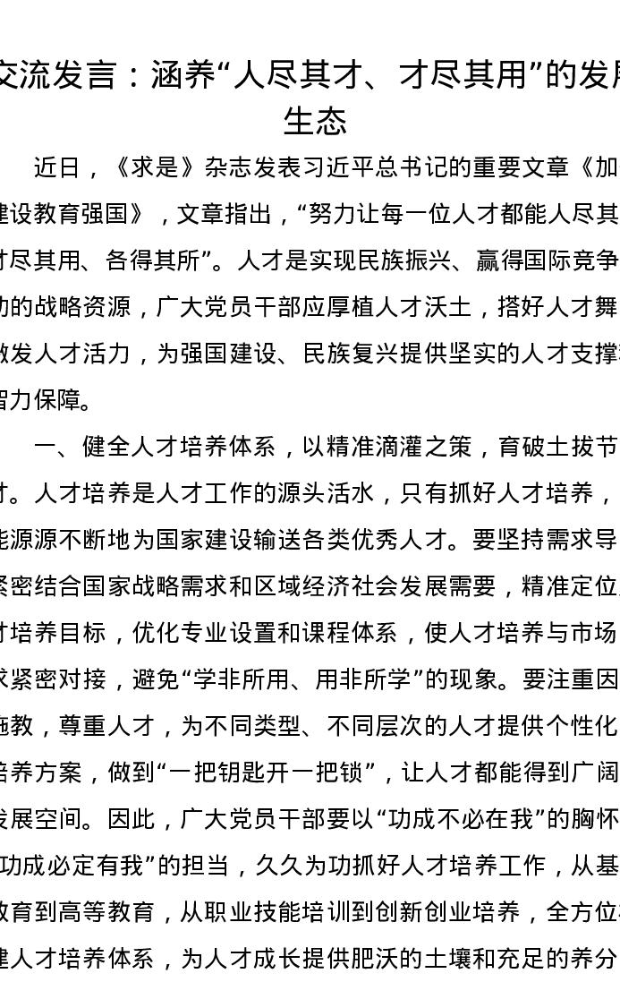 交流发言:涵养“人尽其才、才尽其用”的发展生态