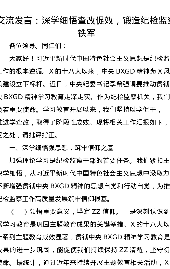 交流发言:深学细悟查改促效,锻造纪检监察铁军
