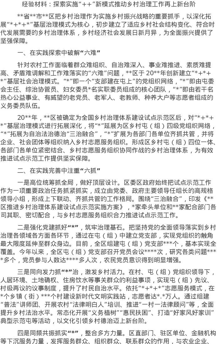 20220719经验材料:探索实施“++”新模式推动乡村治理工作再上新台阶