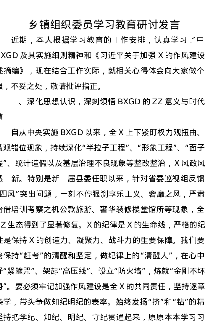 乡镇组织委员学习教育研讨发言