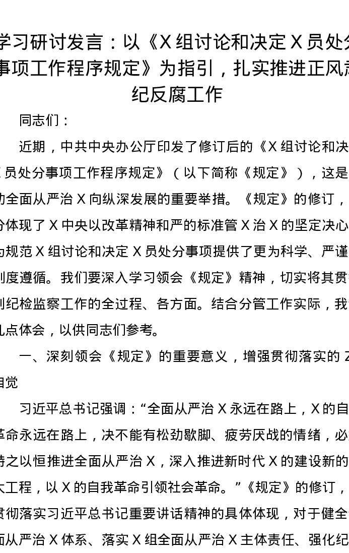 学习研讨发言:以《党组讨论和决定党员处分事项工作程序规定》为指引,扎实推进正风肃纪反腐工作