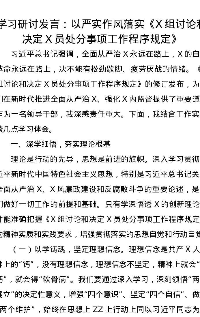 学习研讨发言:以严实作风落实《党组讨论和决定党员处分事项工作程序规定》