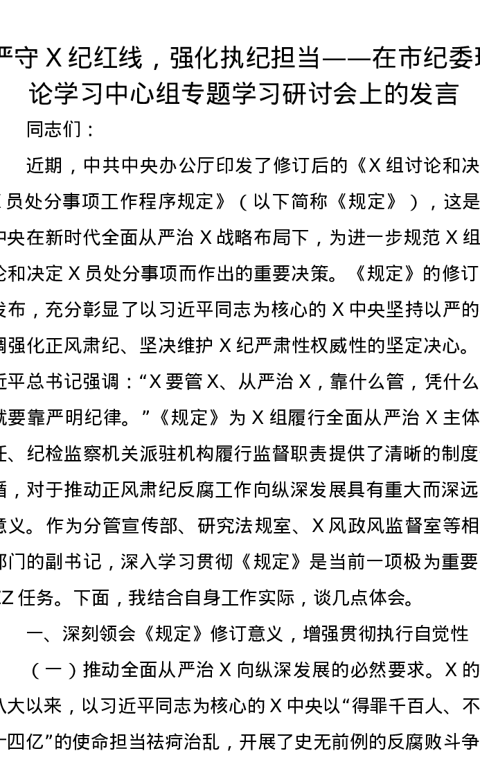 严守党纪红线,强化执纪担当——在市纪委理论学习中心组专题学习研讨会上的发言