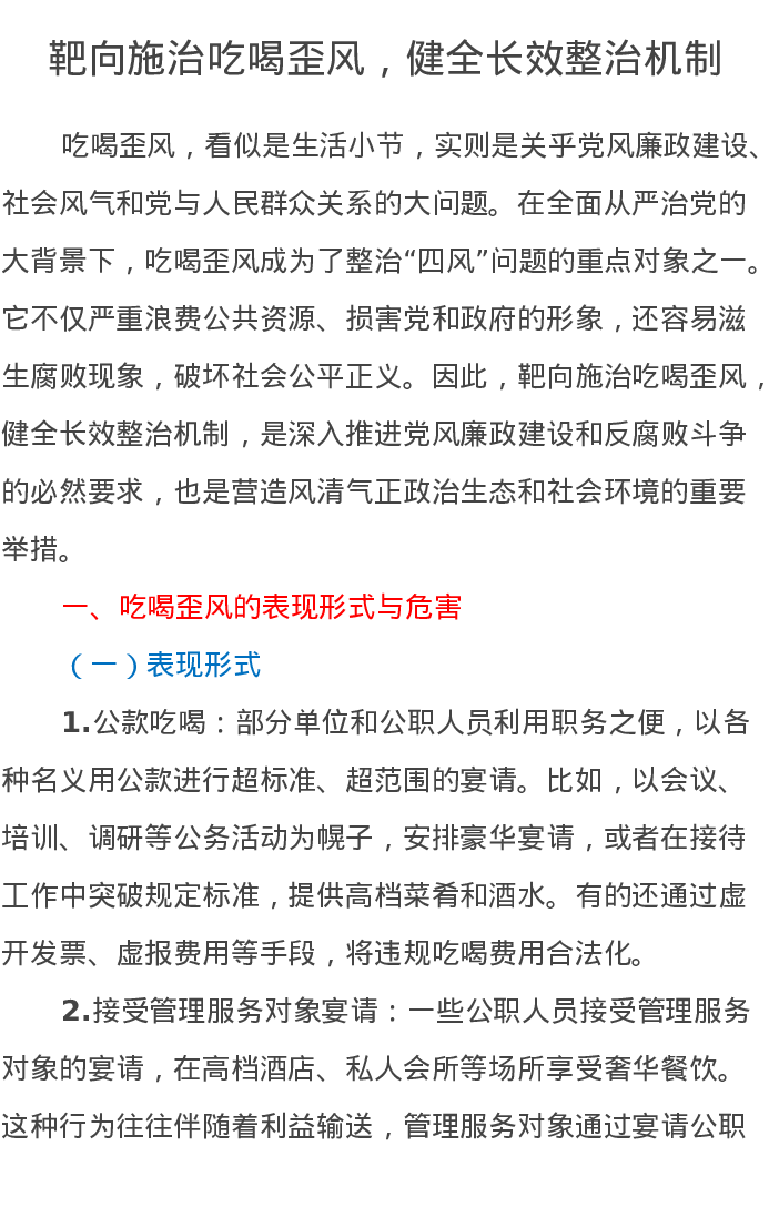 研讨发言:靶向施治吃喝歪风,健全长效整治机制