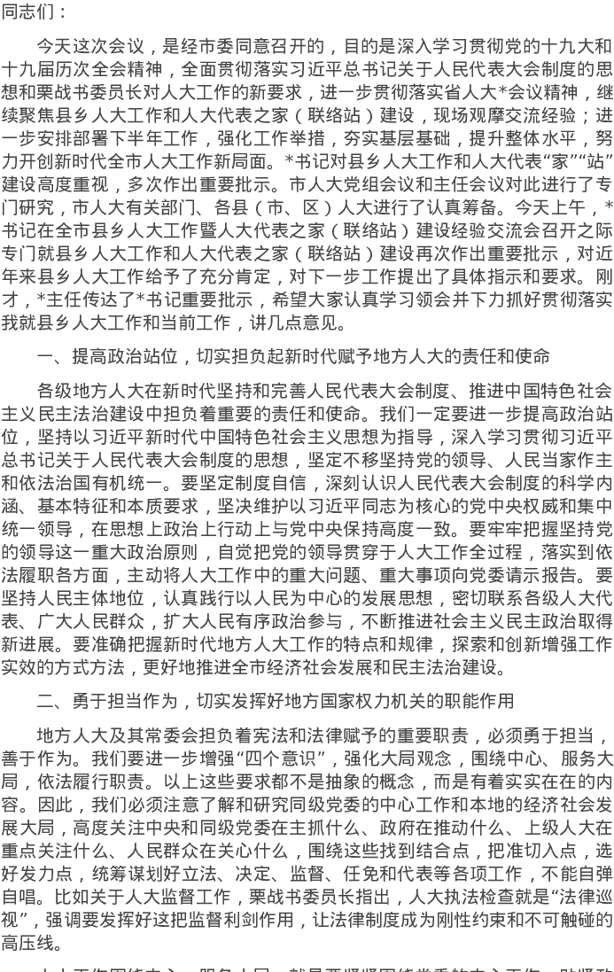 20220724在全市县乡人大工作暨人大代表之家(联络站)建设经验交流会上的讲话