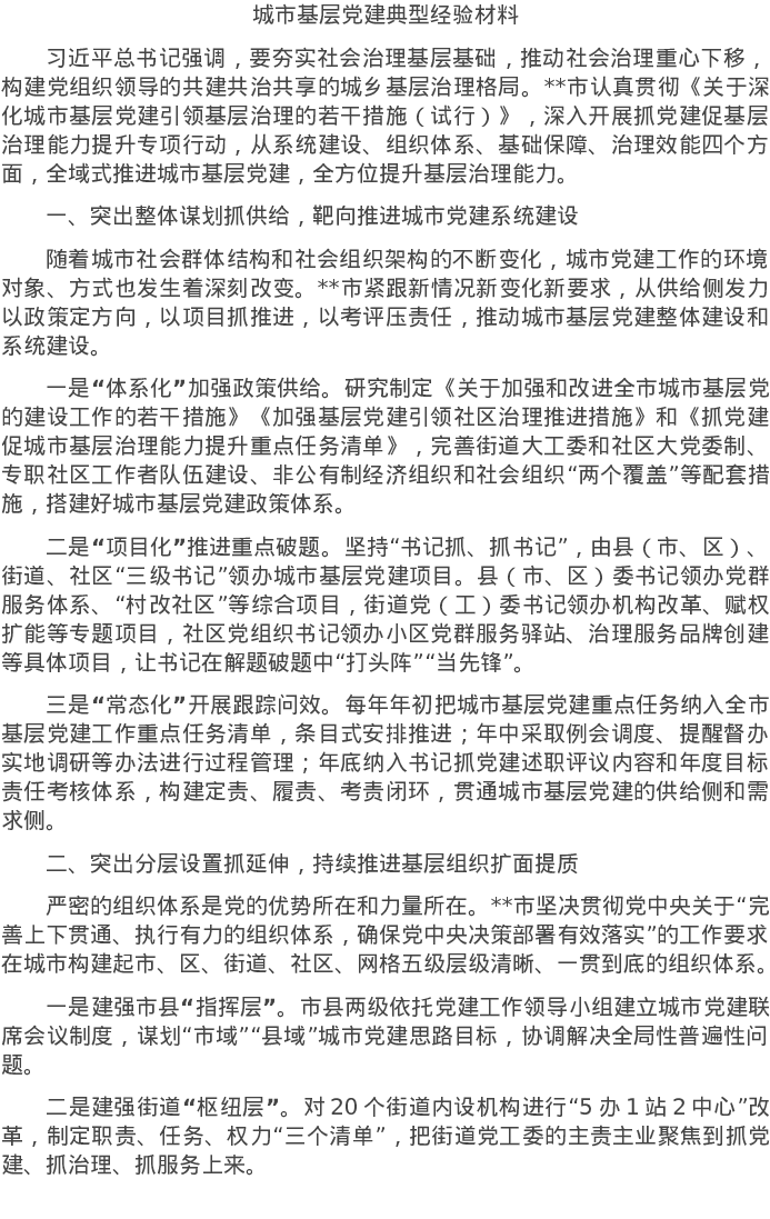 20220724城市基层党建典型经验材料