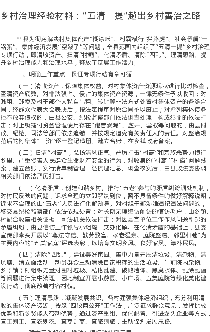 20220802乡村治理经验材料:“五清一提”趟出乡村善治之路