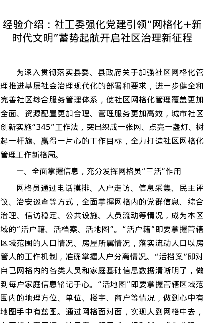 20220808经验介绍:社工委强化党建引领“网格化+新时代文明”蓄势起航开启社区治理新征程