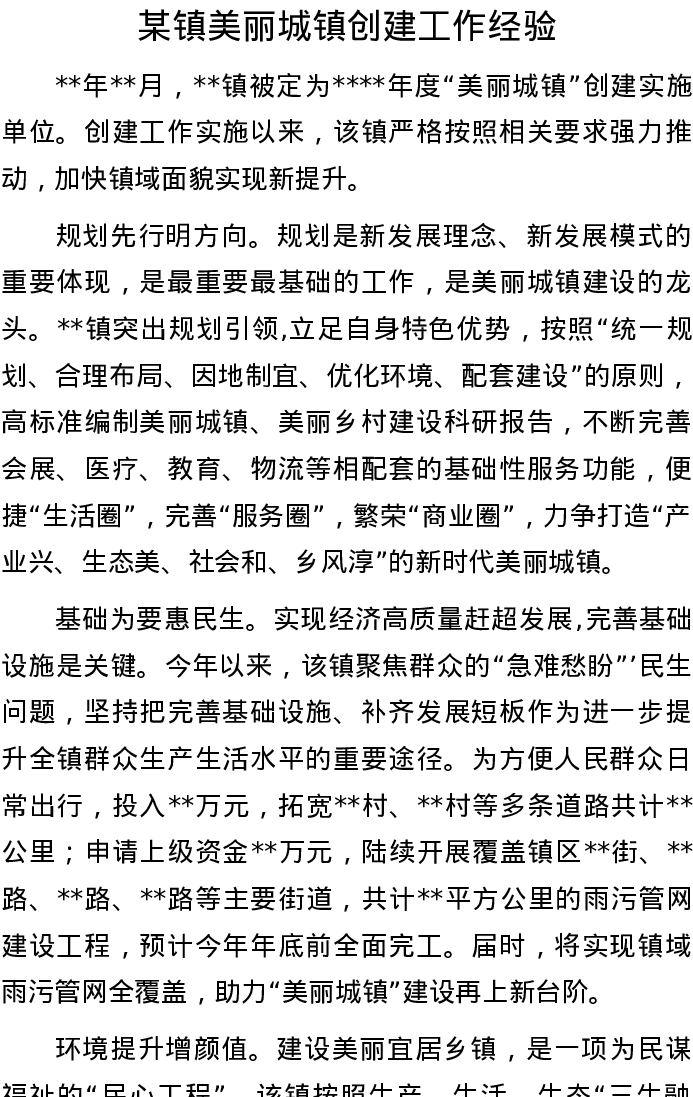 20220809某镇美丽城镇创建工作经验