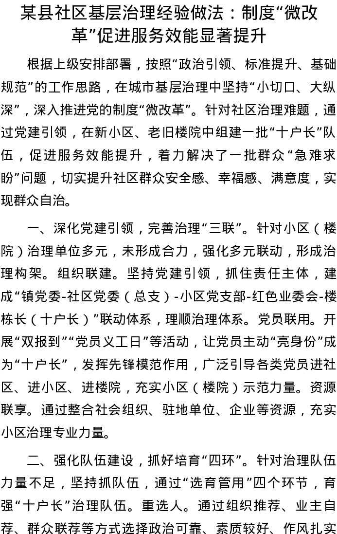 20220820某县社区基层治理经验做法:制度“微改革”促进服务效能显著提升