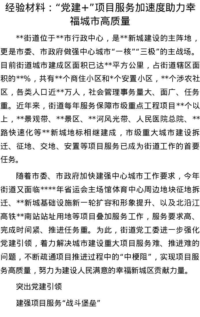 20220820经验材料:“党建+”项目服务加速度助力幸福城市高质量