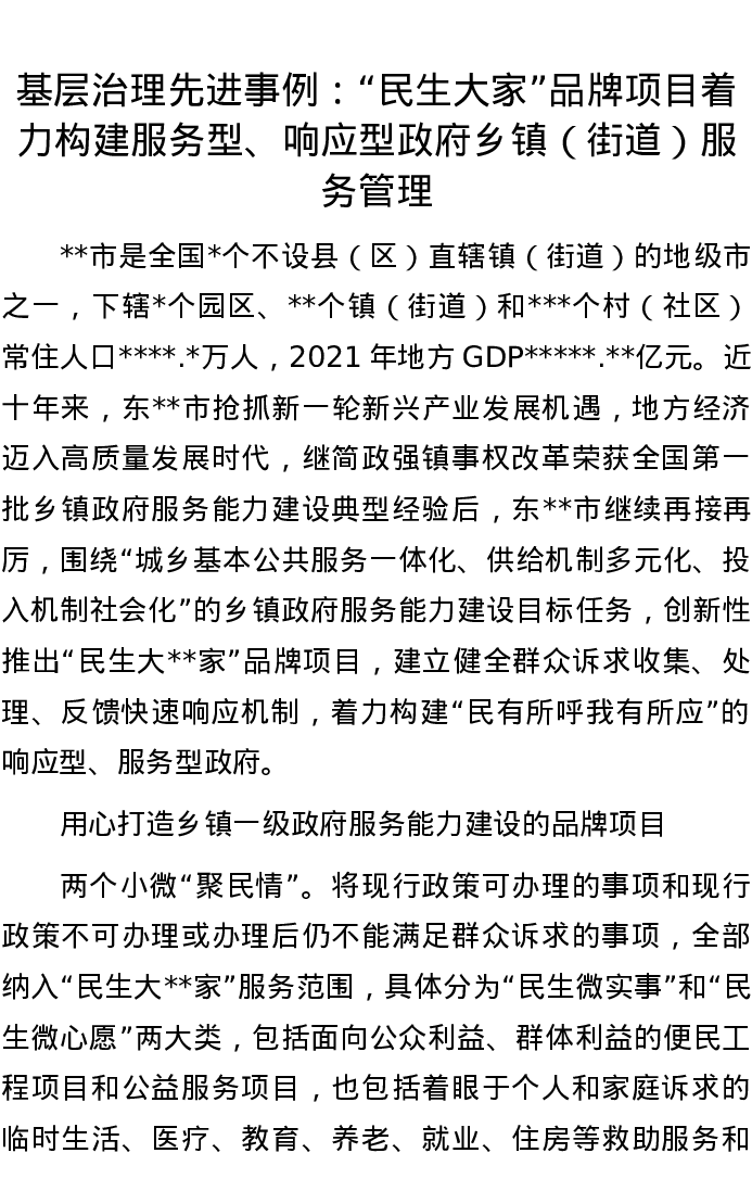 20220909基层治理先进事例:“民生大家”品牌项目着力构建服务型、响应型政府乡镇(街道)服务管理