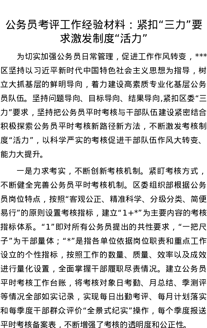 20220913公务员考评工作经验材料:紧扣“三力”要求 激发制度“活力”