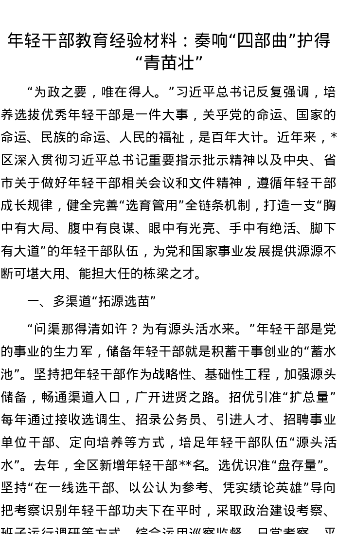 20220914年轻干部教育经验材料:奏响“四部曲”护得“青苗壮”