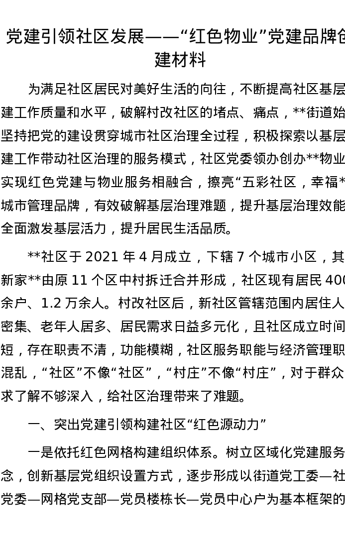 20220922党建引领社区发展——“红色物业”党建品牌创建材料