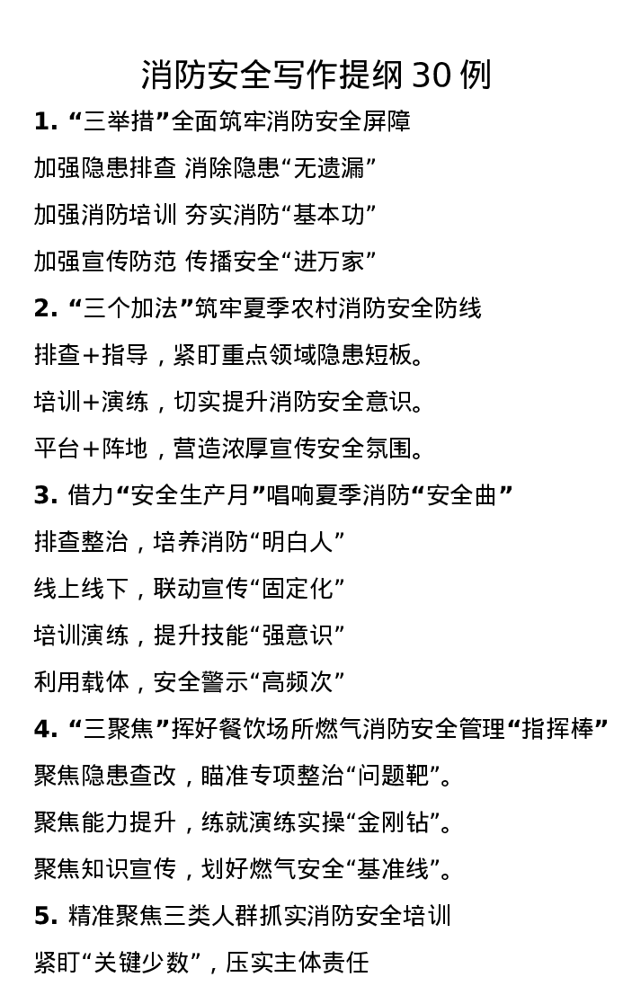 消防安全写作提纲30例