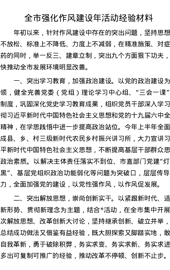 20220924全市强化作风建设年活动经验材料