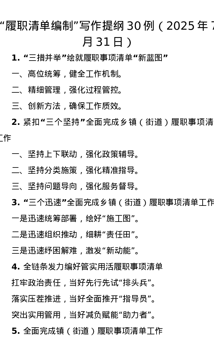 “履职清单编制”写作提纲30例(2025年7月31日)