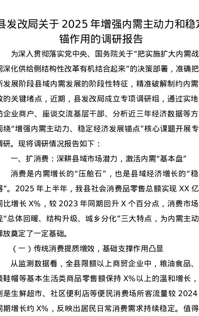县发改局关于2025年增强内需主动力和稳定锚作用的调研报告