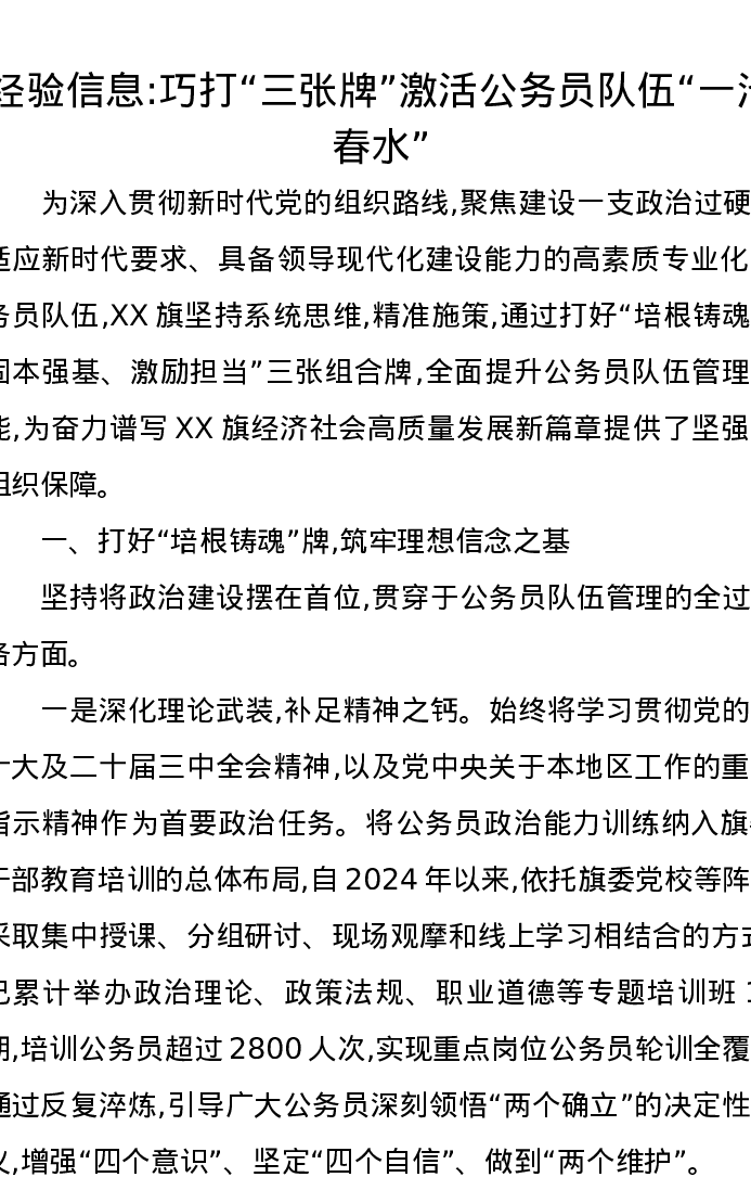 经验信息:巧打“三张牌”激活公务员队伍“一池春水”