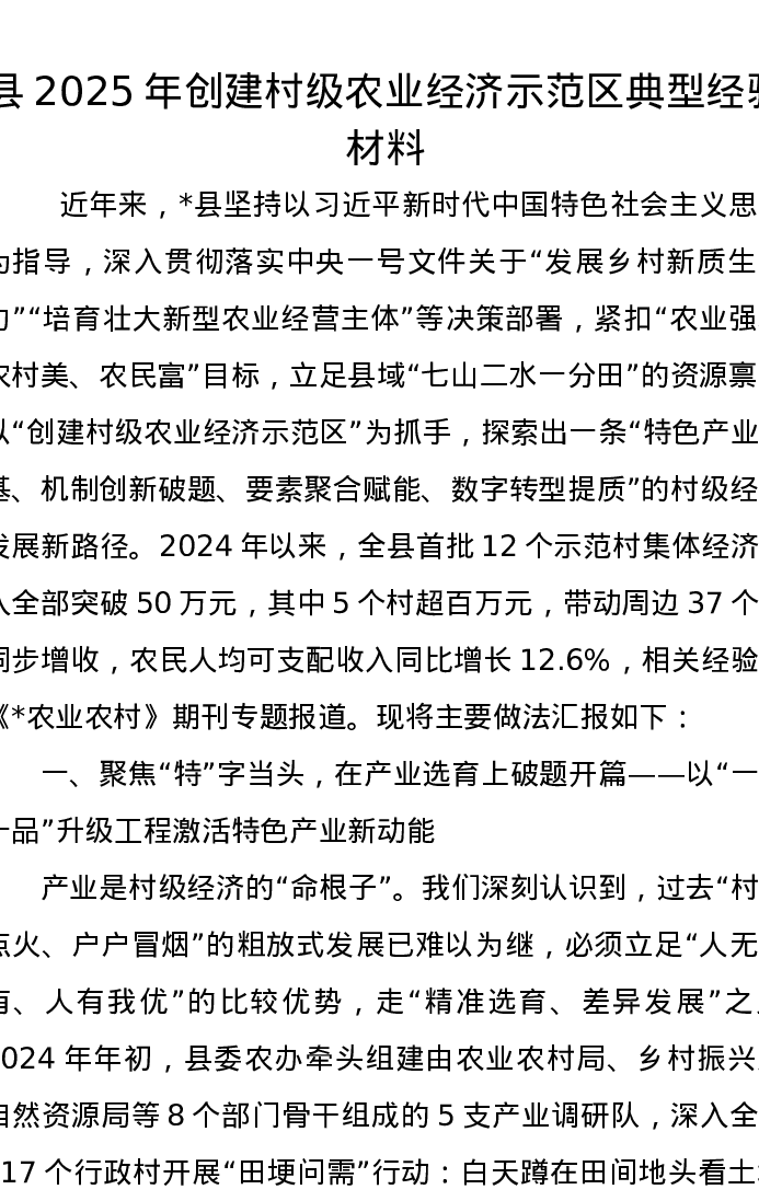 县2025年创建村级农业经济示范区典型经验材料