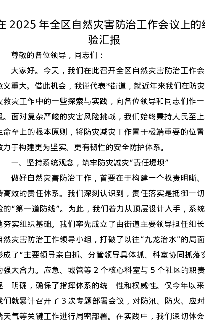 在2025年全区自然灾害防治工作会议上的经验汇报
