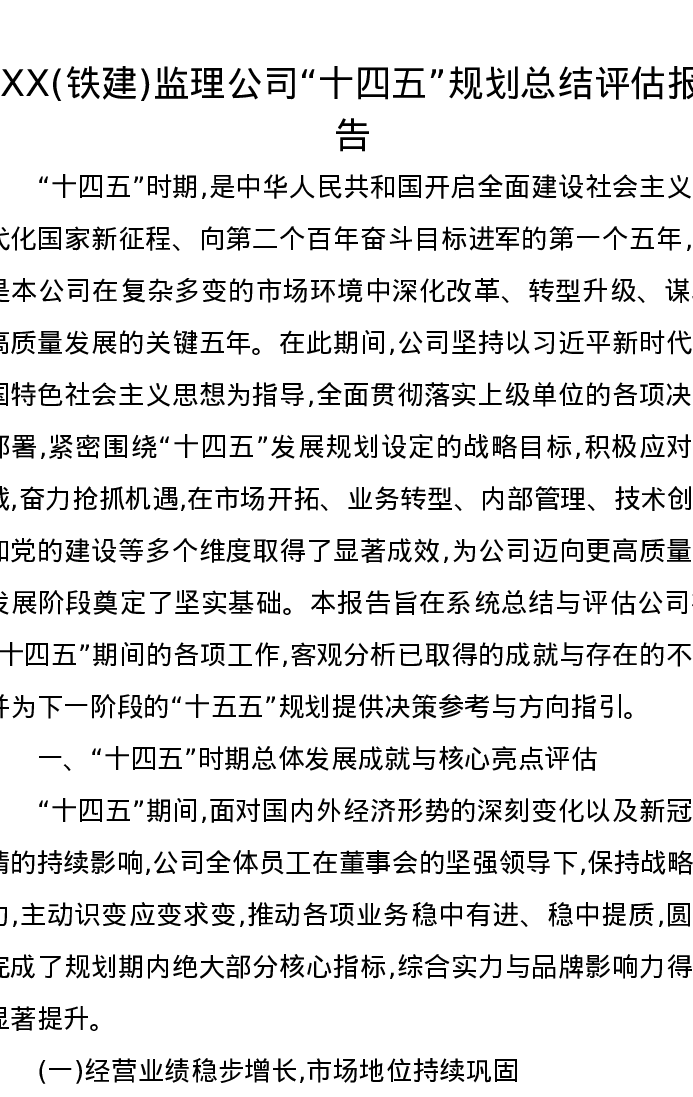 XX(铁建)监理公司“十四五”规划总结评估报告