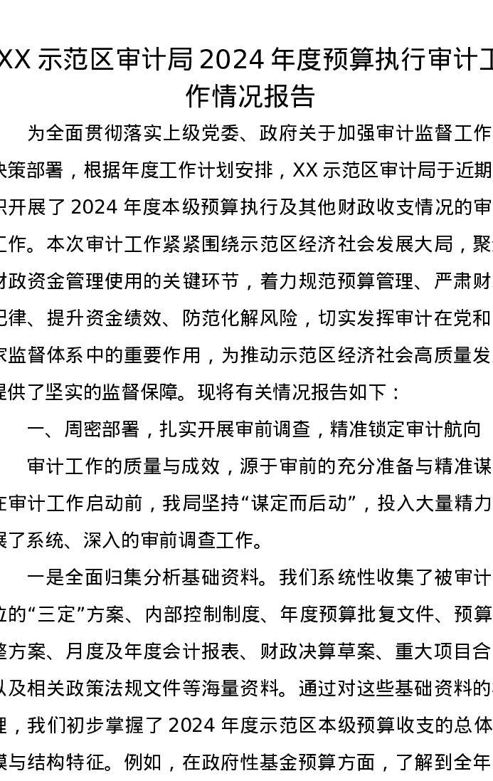 XX示范区审计局2024年度预算执行审计工作情况报告