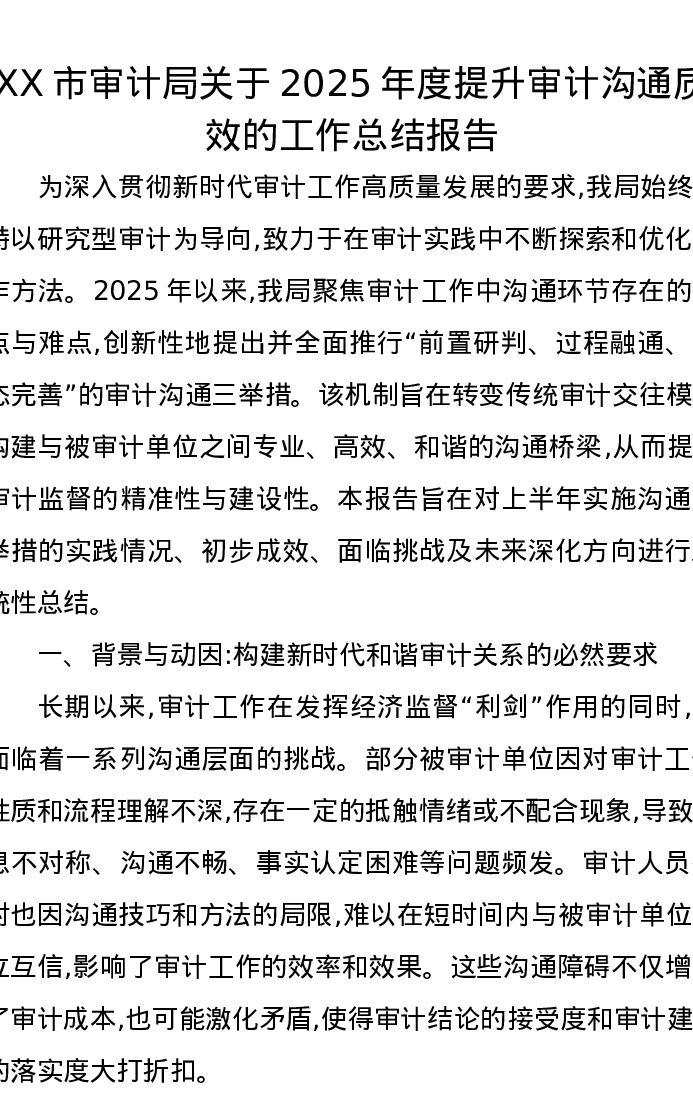 XX市审计局关于2025年度提升审计沟通质效的工作总结报告