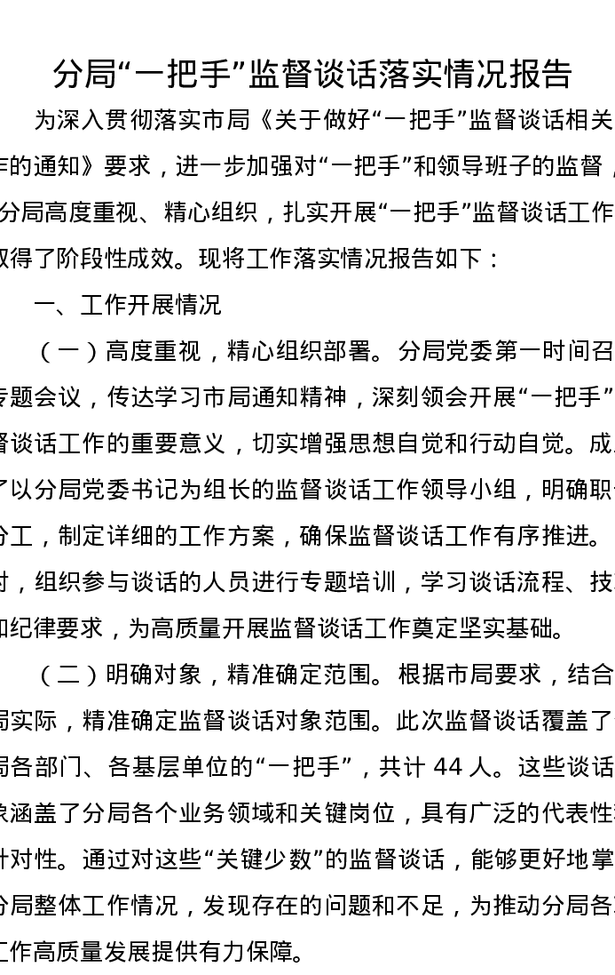 分局“一把手”监督谈话落实情况报告