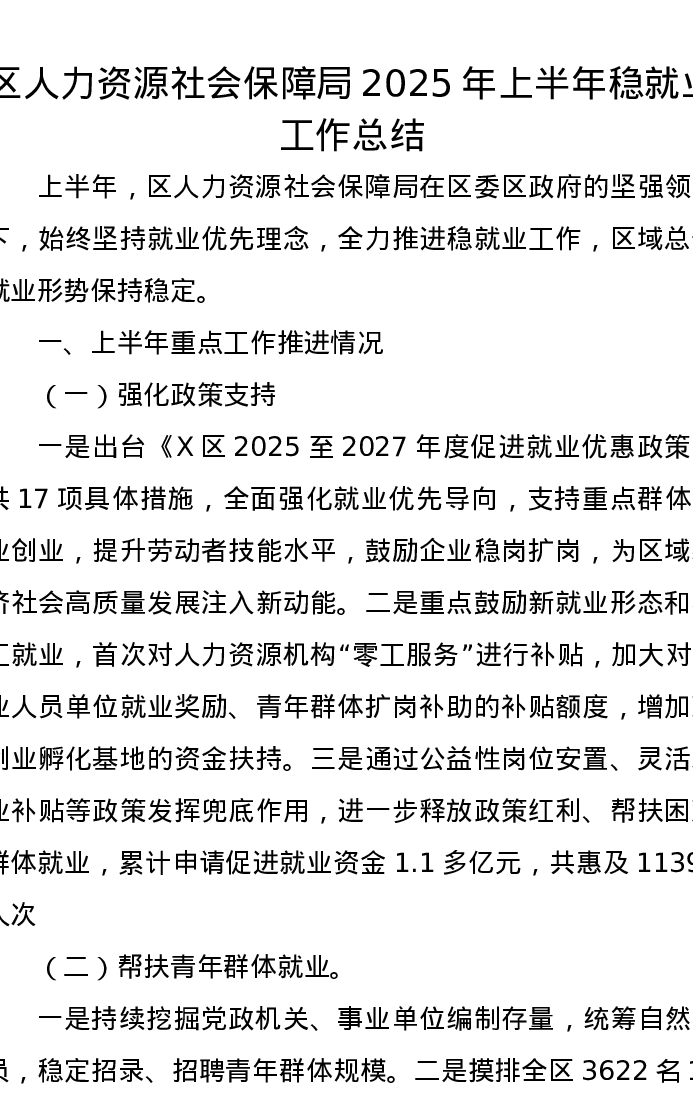 区人力资源社会保障局2025年上半年稳就业工作总结