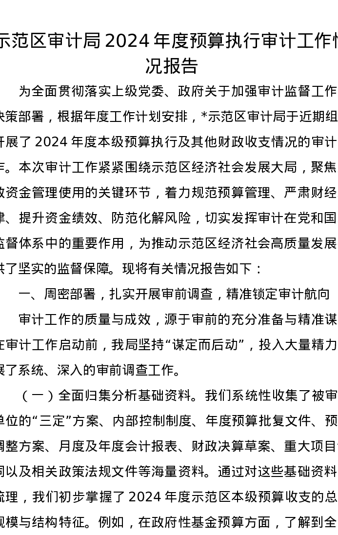 示范区审计局2024年度预算执行审计工作情况报告