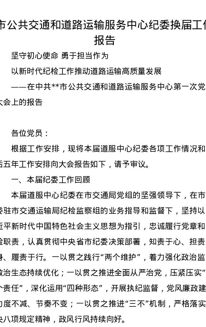 市公共交通和道路运输服务中心纪委换届工作报告