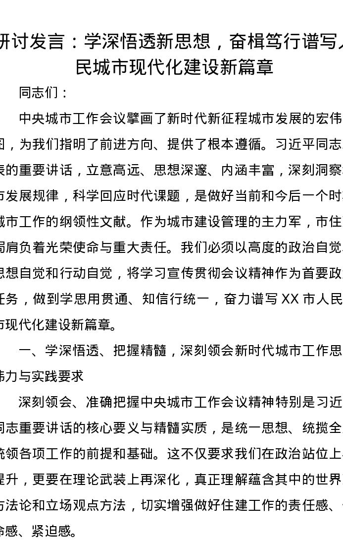 研讨发言:学深悟透新思想,奋楫笃行谱写人民城市现代化建设新篇章